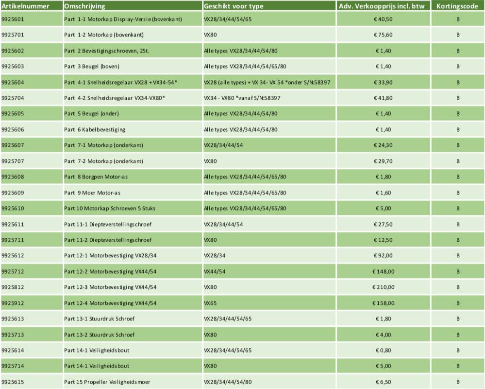 Onderdeel 1-1 (zie tekening) Artikelnummer 9925601