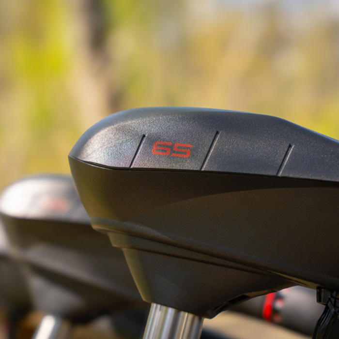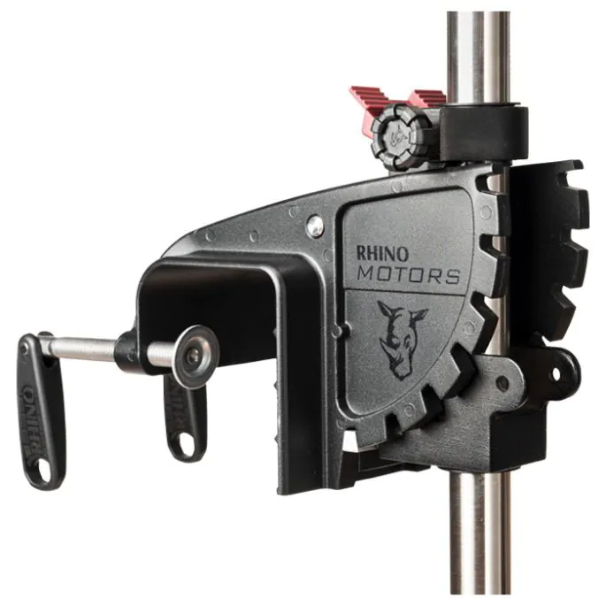 De Rhino lijkt prima geconstrueerd. Hij is met 9,7 kilo wel de zwaarste motor in de test en ondanks dat het nog geen drie kilo scheelt met de lichtste, voel je het verschil duidelijk. Als enige heeft de Rhino geen kunststof bracket en dat komt de stabiliteit ten goede. Het valt positief op dat de motor volgas aanzienlijk minder verbruikt dan de concurrenten. Op dit niveau is iedere ampère minder er één en het verschil loopt bij sommige zelfs op tot 10 ampère. De accumeter op de motor is lastig afleesbaar in het zonlicht.