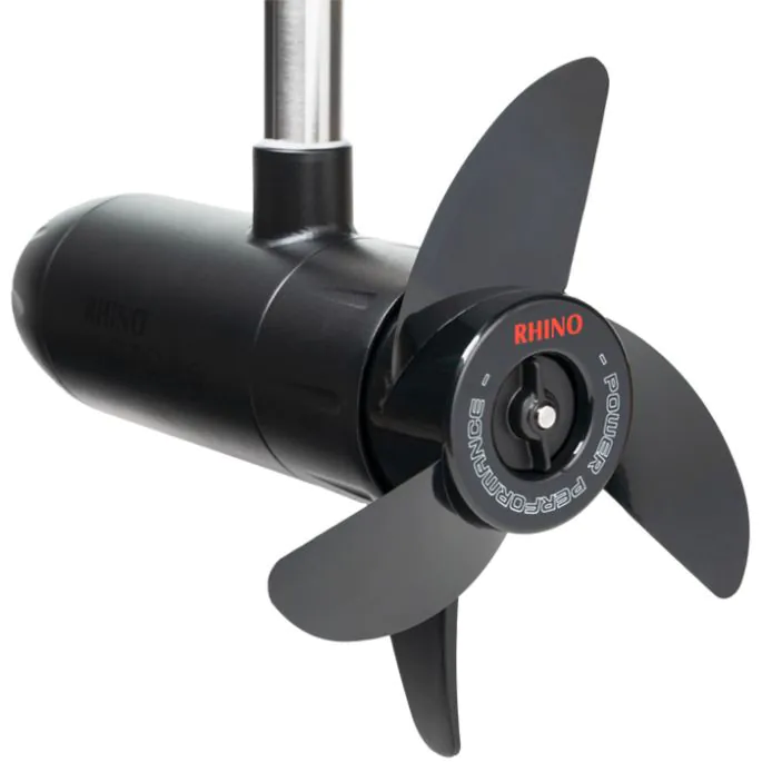 Met de nieuwe Rhino VX 65 V2 fluistermotor brengt deze Duitse fabrikant één van de sterkste fluistermotoren op 12 volt naar de markt. De motor heeft een stappenschakelaar met 5 standen vooruit en 2 achteruit. Het meest vergelijkbaar is de Talamex TM66. De Rhino VX 65 V2 heeft weliswaar één lbs minder stuwkracht dan de Talamex (65 tegenover 66 lbs). Dit verschil is verwaarloosbaar. Daarbij voelt de Rhino een stuk degelijker aan. Ook is het verbruik van de Rhino lager. We hebben hier te maken met een uitstekende fluistermotor, tegen een goede prijs.